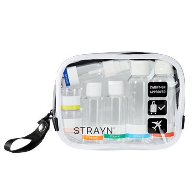 Strayn® Transparenter Kulturbeutel mit Flaschen